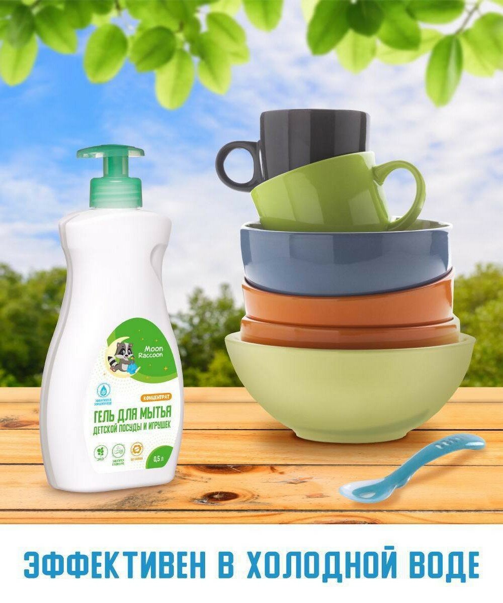 Гель для мытья детской посуды и игрушек Moon Raccoon Premium Care концентрат 500мл