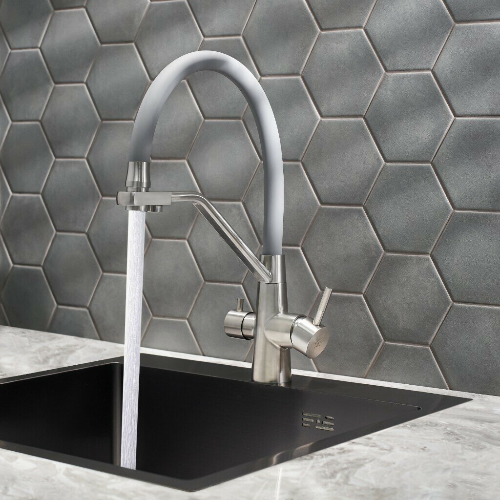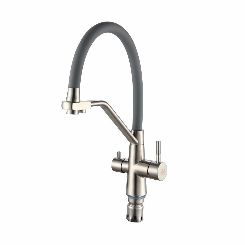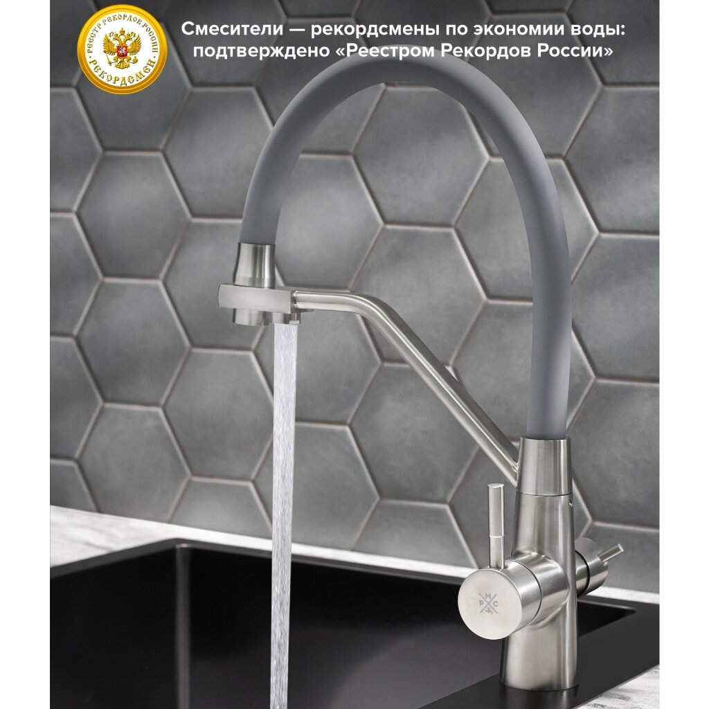 Смеситель для кухни с переключением фильтра для питьевой воды с гибким изливом это не только стилистическое, но и функциональное решение для оснащения кухни. При производстве смесителей ТМ РМС используются только высококачественные материалы. Смесители серии SUS127 выполнены из нержавеющей стали, что является гарантией качества и долговечности, устойчивы к царапинам и перепадам температур, экологичны и безопасны для вашего здоровья, Поверхность не потеряет со временем свой роскошный вид, а уход за ней сводится к протиранию мягкой салфеткой. Установка смесителя крайне проста. Смесители РМС это сертифицированный продукт с 7-летней гарантией.