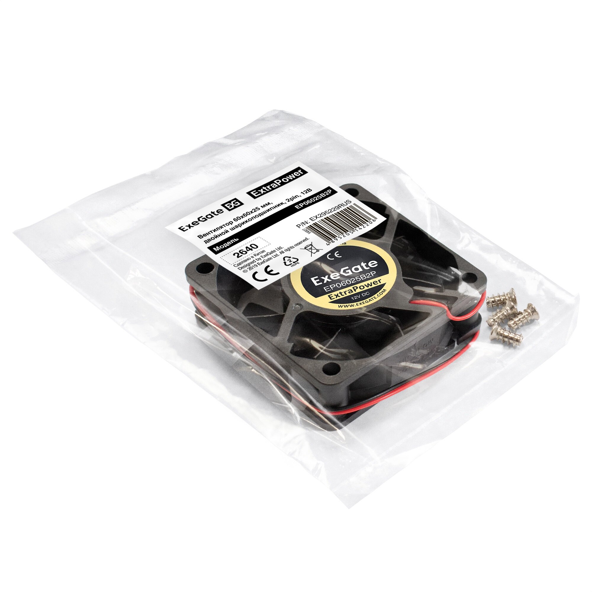 Вентилятор для корпуса Exegate 60x60x25 мм 4500rpm 23.1CFM 31dBA 2-pin EX295229RUS