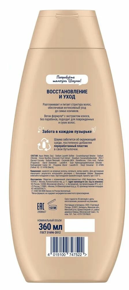 Шампунь для волос Шаума Восстановление и уход 360 мл