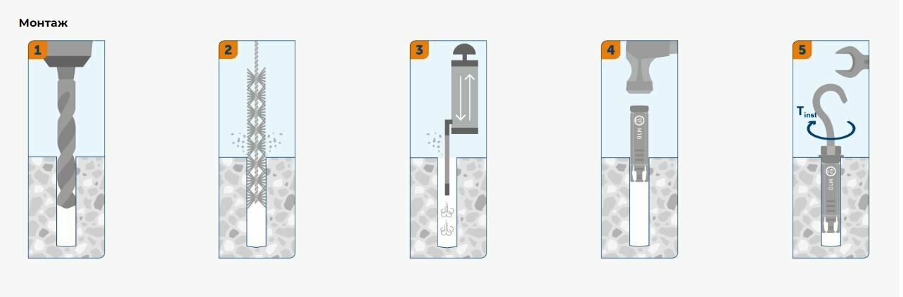 Анкерный болт с Г-образным крюком применяется для монтажа подвесных конструкций, креплений, строительных лесов в бетон, полнотелый кирпич, естественный камень.