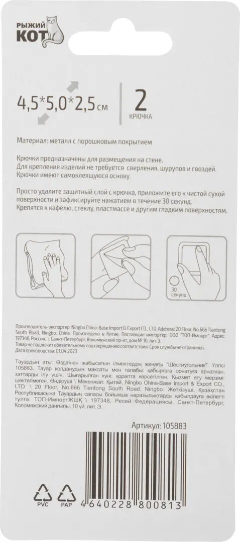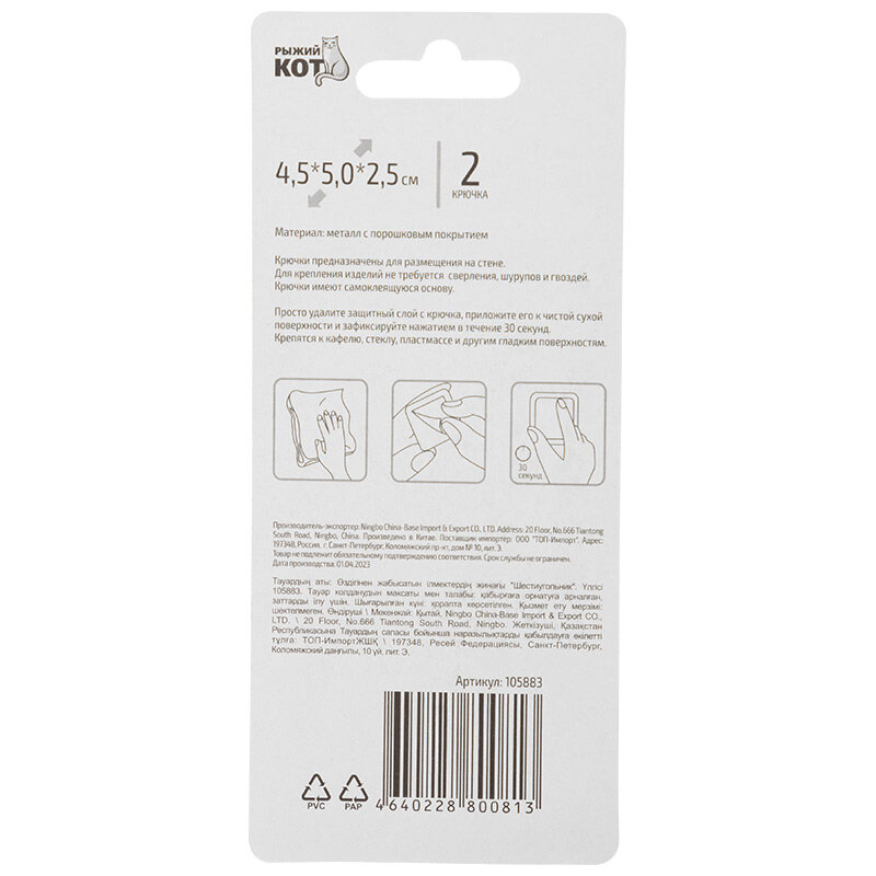 Сервис сравнения цен СкидкаГИД предлагает сравнить цены на товар «крючки самоклеящиеся РЫЖИЙ КОТ Шестиугольник 2шт металл (105883)»