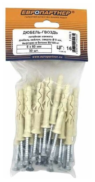 Сервис сравнения цен СкидкаГИД предлагает сравнить цены на товар «Дюбель-гвоздь PDG UK с потайной манжетой 8 x 60 30 штук Европартнер»