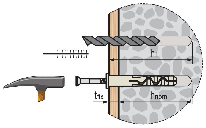 Дюбель-гвоздь позволяет осуществить быстрый, сквозной монтаж. Просто просверлите отверстие через прикрепляемый материал, забейте гвоздь и крепление готово. Шлиц на шляпке позволяет демонтировать гвоздь.