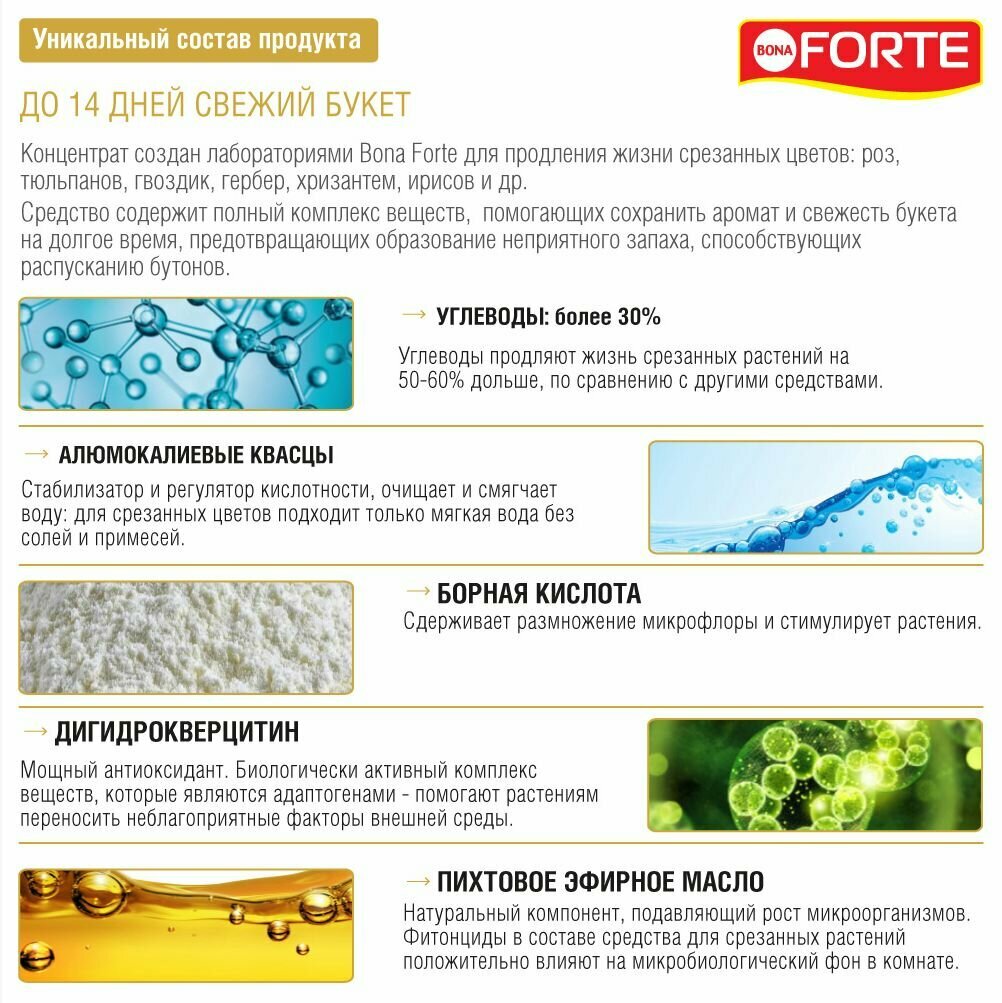 | Применение | для продления жизни срезанных цветов |