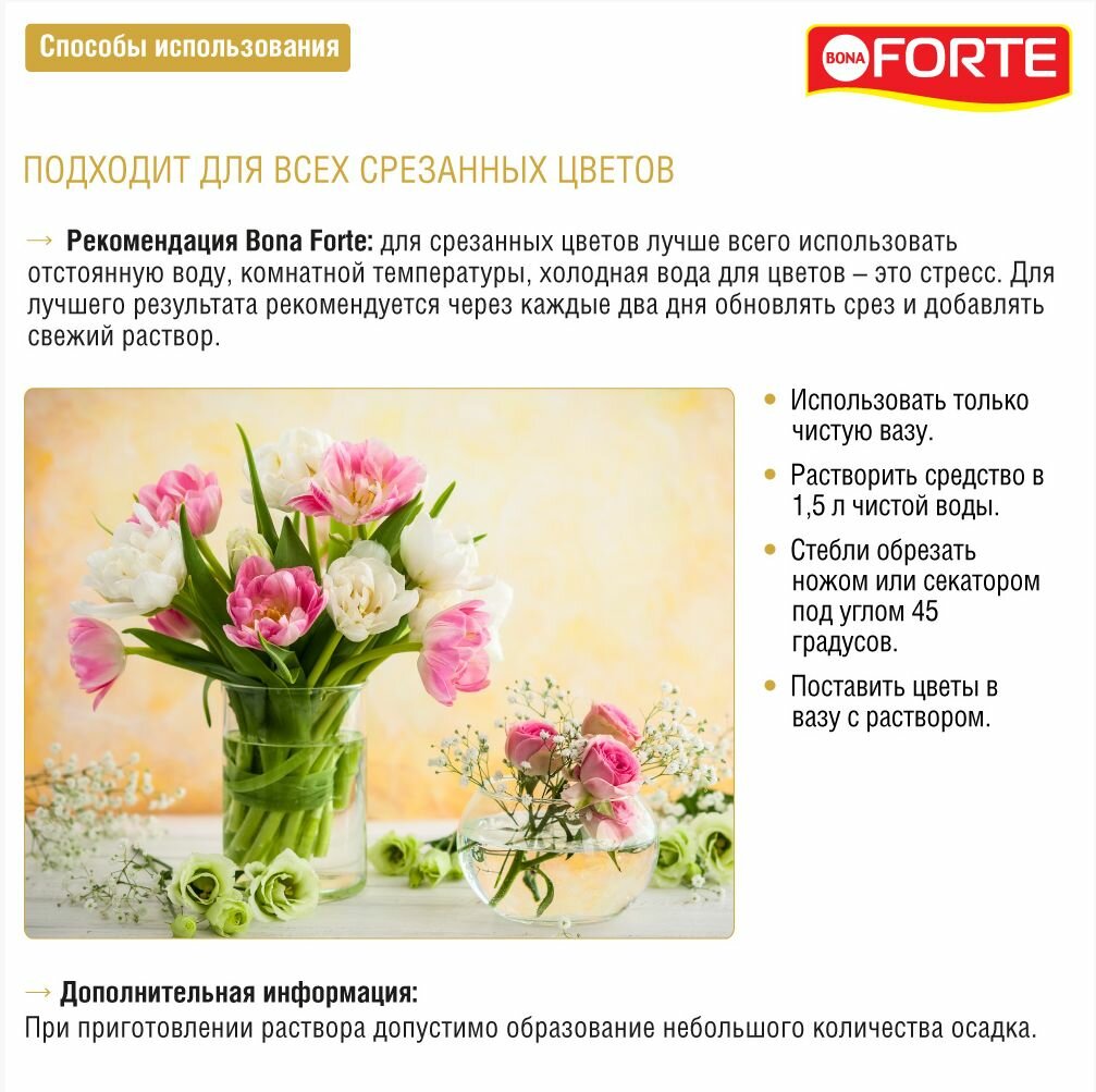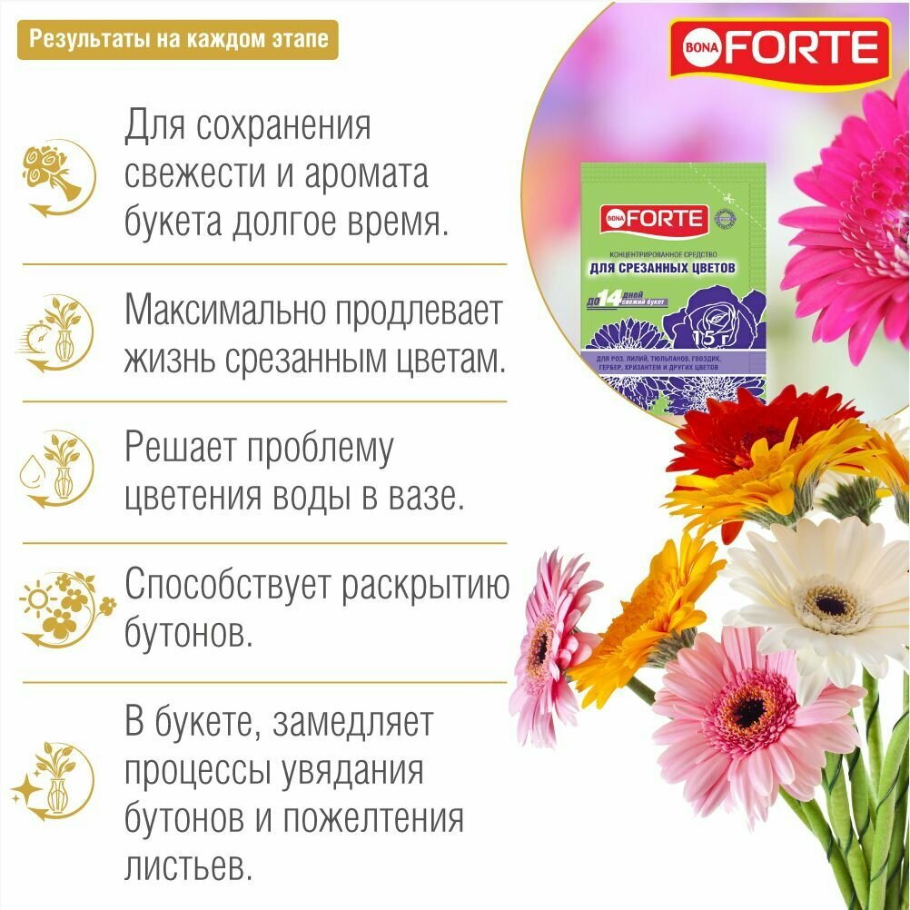 - Максимально продлевает жизнь срезанным цветам