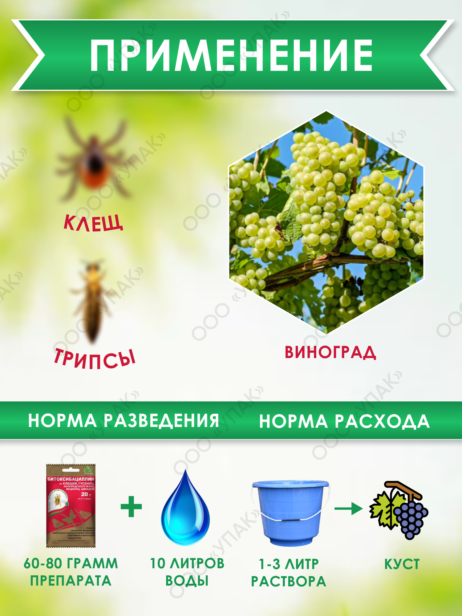 | Назначение | от вредителей, для овощных культур, для плодовых культур, для цветочных культур, для декоративных культур, для картофеля, для винограда, для роз |