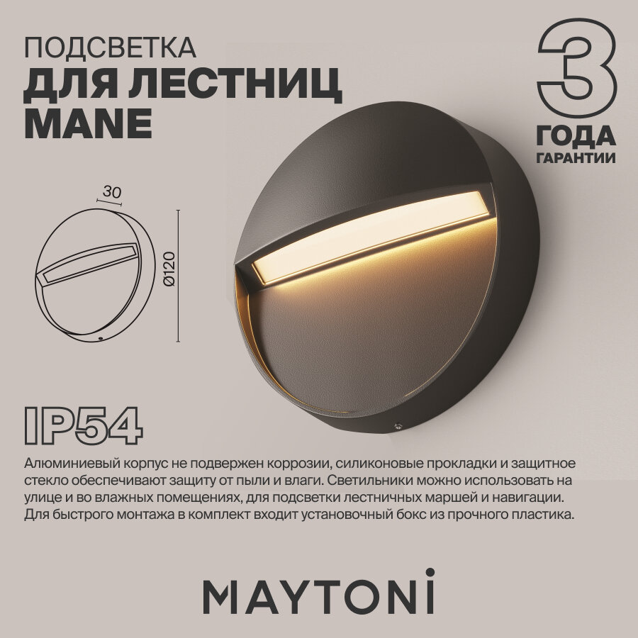 Отличное решение для обеспечения безопасности и стильного дизайна вашего дома — подсветка для лестниц и ступеней Maytoni Bil O015SL-L3B3. Она имеет современный дизайн и отличительный черный цвет, который прекрасно впишется в любое пространство. Данная модель укомплектована светодиодной лампой общей мощностью 3W, что обеспечивает оптимальный световой поток в 60 лм. Подсветка для лестниц и ступеней Maytoni Bil O015SL-L3B3 подключается к стандартной сети 220В и устанавливается врезным способом. Произведена из прочного алюминия и имеет степень защиты IP65, что гарантирует ее долговечность и защиту от пыли и влаги. Теплый белый цвет свечения и круглая форма плафона создают уютное и теплое атмосферу. Производитель предоставляет гарантию на 2 года.