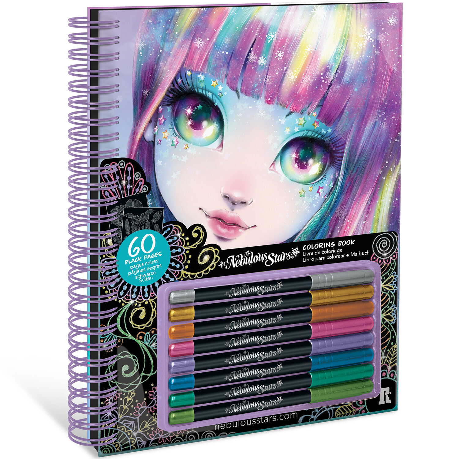 Раскраска для девочек Nebulous Stars 11136_NSDA Раскраска для девочек 60 черных скетч страниц, 8 гелевых ручек
