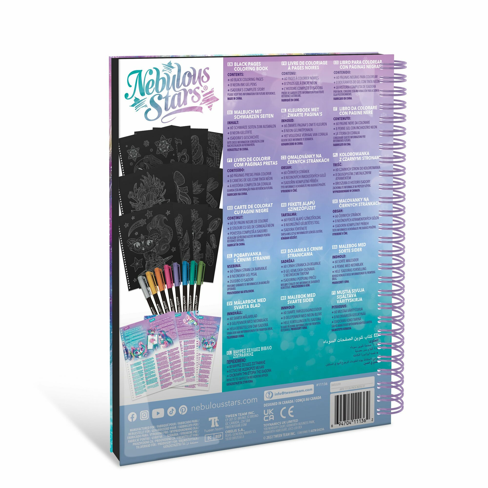 Комплектация: 60 страниц для раскрашивания, 8 гелевых ручек, полная история звёздочки Isadora.