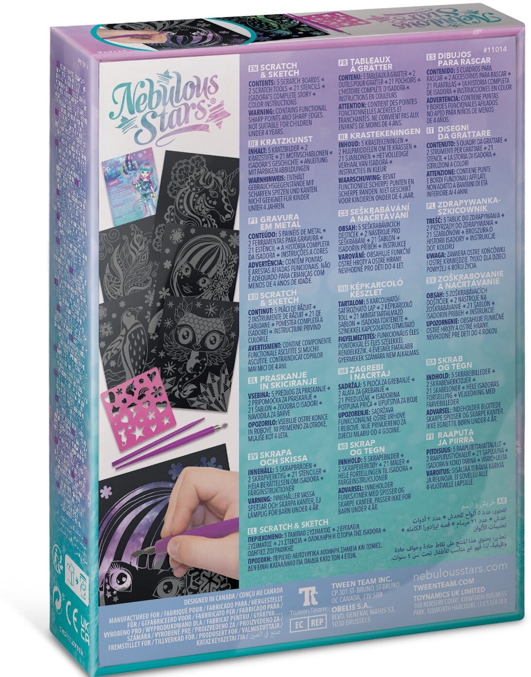 Комплектация: 5 основ для граттажа, 2 инструмента-скребка, 21 трафарет, полная история звездочки Isadora, инструкция.