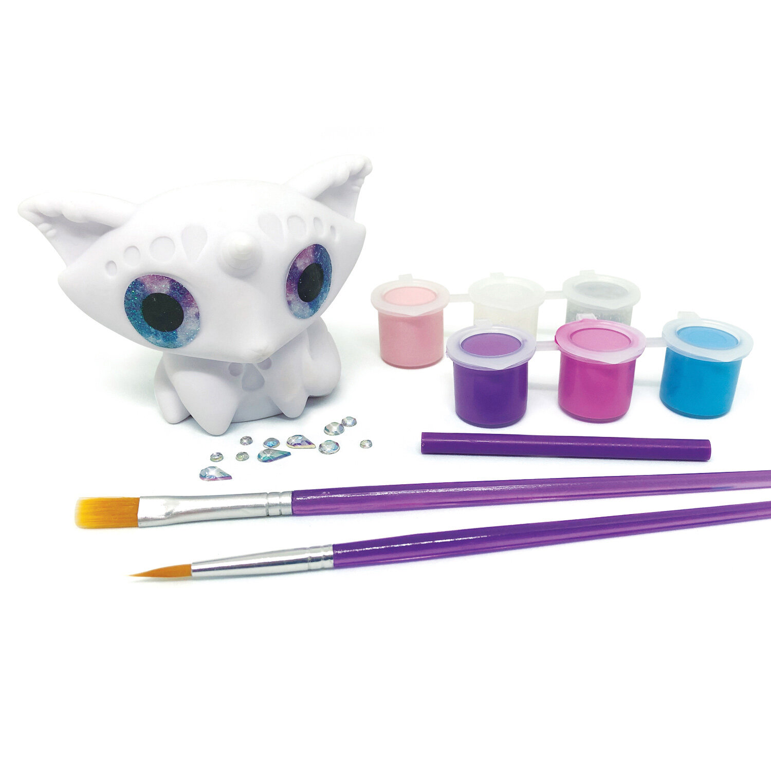 Набор для творчества по разукрашиванию и декорированию гипсовый фигуры с помощью акриловых красок, блестящего лака, кисточек и стразов.