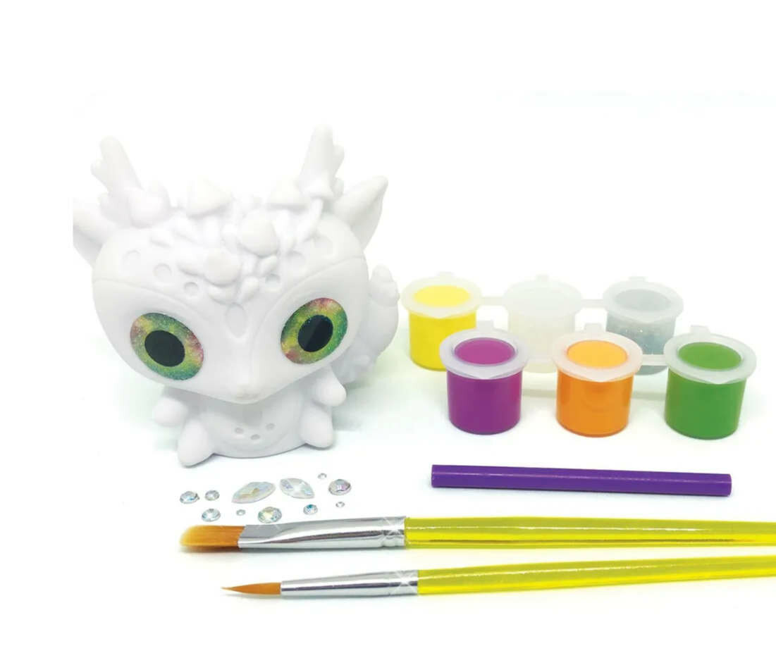 Набор для творчества по разукрашиванию и декорированию гипсовый фигуры с помощью акриловых красок, блестящего лака, кисточек и стразов.