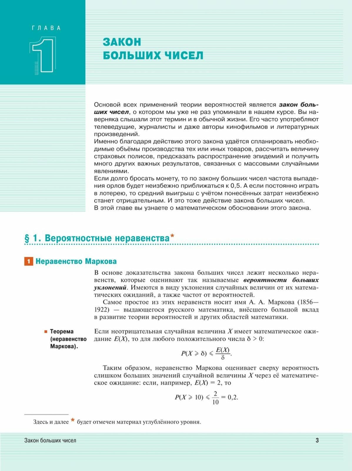 Учебное пособие знакомит учащихся с законом больших чисел, элементами математической статистики, непрерывными случайными величинами, понятием статистической зависимости.