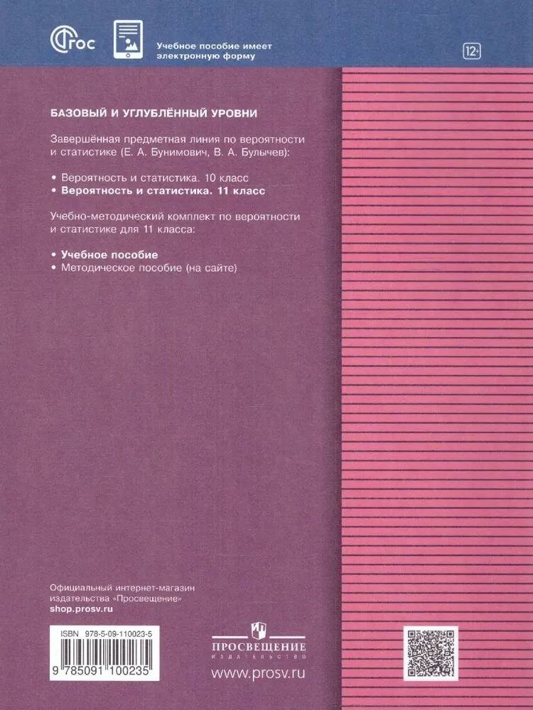 Математика. Вероятность и статистика. 11 класс. Учебное пособие. ФГОС (Бунимович Евгений Абрамович, Булычев Владимир Александрович); Просвещение, 2024