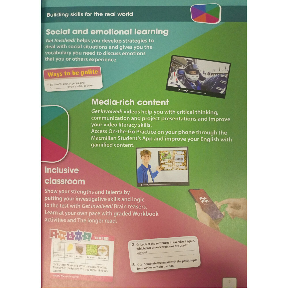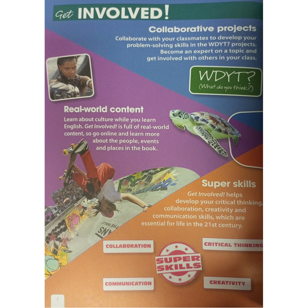 Get Involved! дает учащимся-подросткам чувство азарта и желание исследовать мир, который ждет их впереди. Это развивает их лингвистические навыки и супернавыки, побуждая их принимать участие в управлении своим будущим. Курс также позволяет учителям создать инклюзивный класс, где каждый раскрывает свой потенциал и имеет возможность проявить себя.