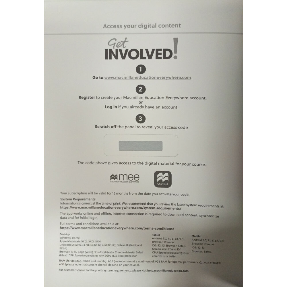 Учебник содержит код доступа к цифровой версии учебника и доступ к приложению для учащихся Student's App.