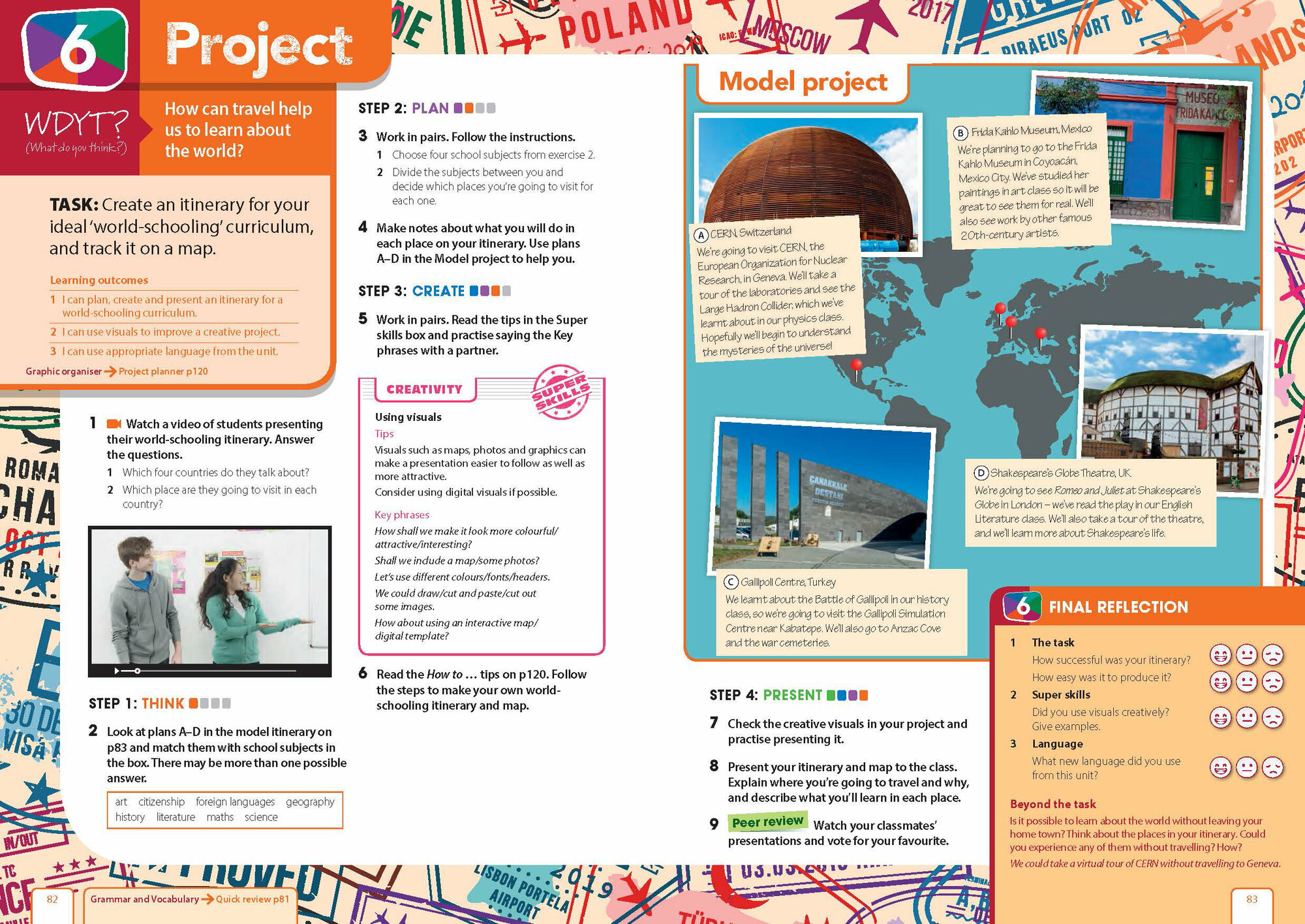 Что делает человека героем? Что такое идеальная школа? Зачем люди наряжаются? Каждое занятие начинается с вопроса, чтобы вызвать любопытство и обеспечить вовлеченность каждого студента. На протяжении всего курса учащиеся получают знания, язык и навыки, необходимые для ответа на вопрос в рамках совместного проекта в конце курса. Завершение проекта дает студентам возможность сразу же использовать новый язык и навыки.