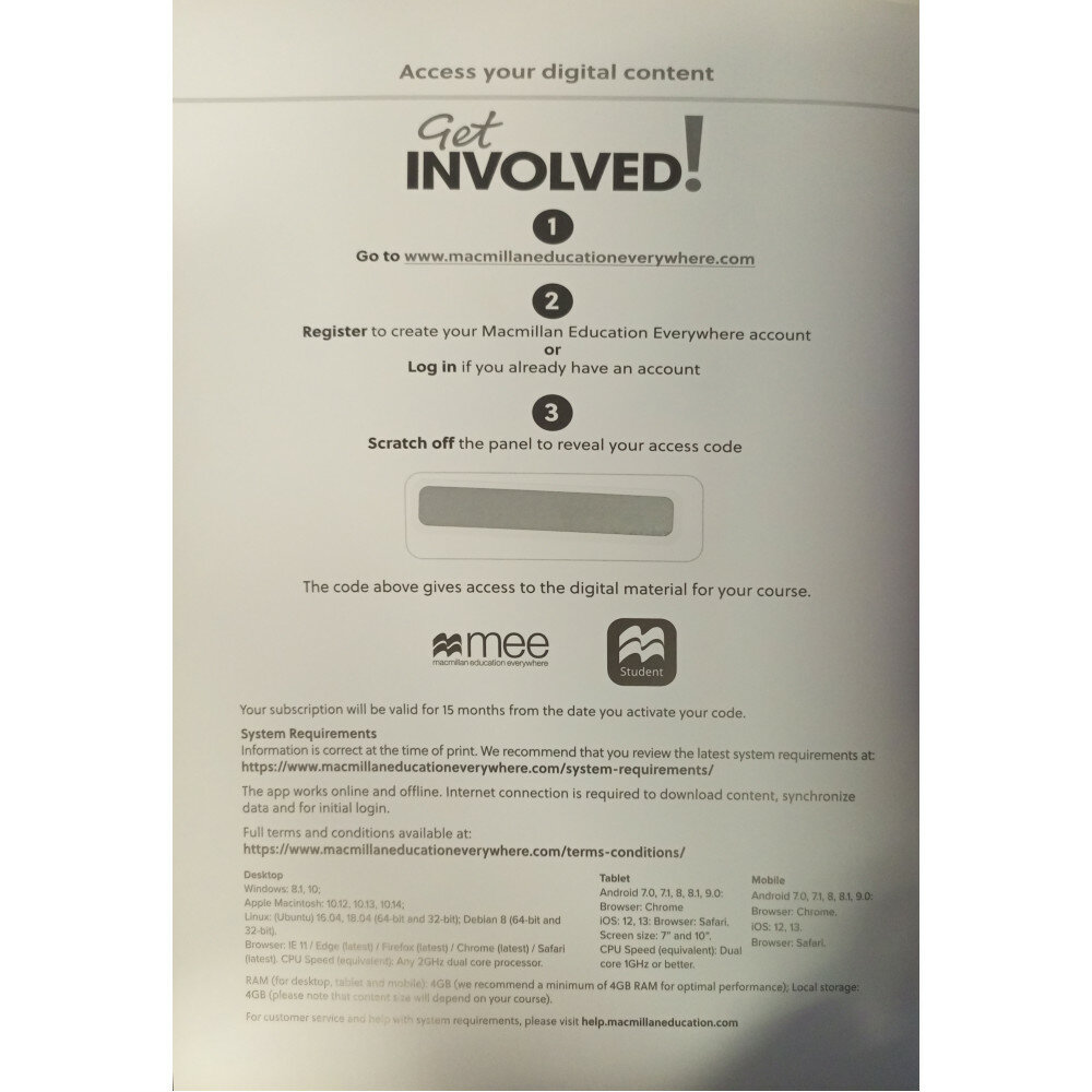 Учебник содержит код доступа к цифровой версии учебника и доступ к приложению для учащихся Student's App.