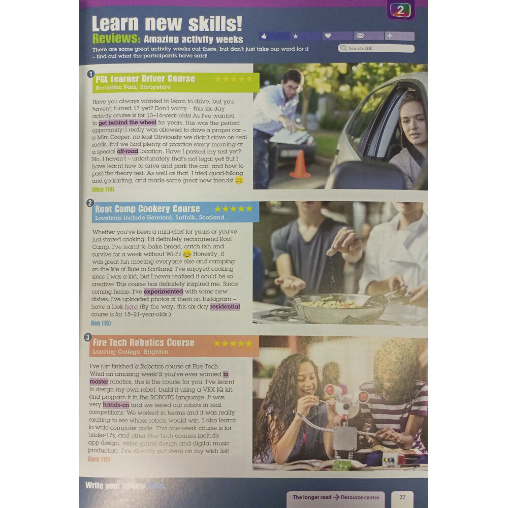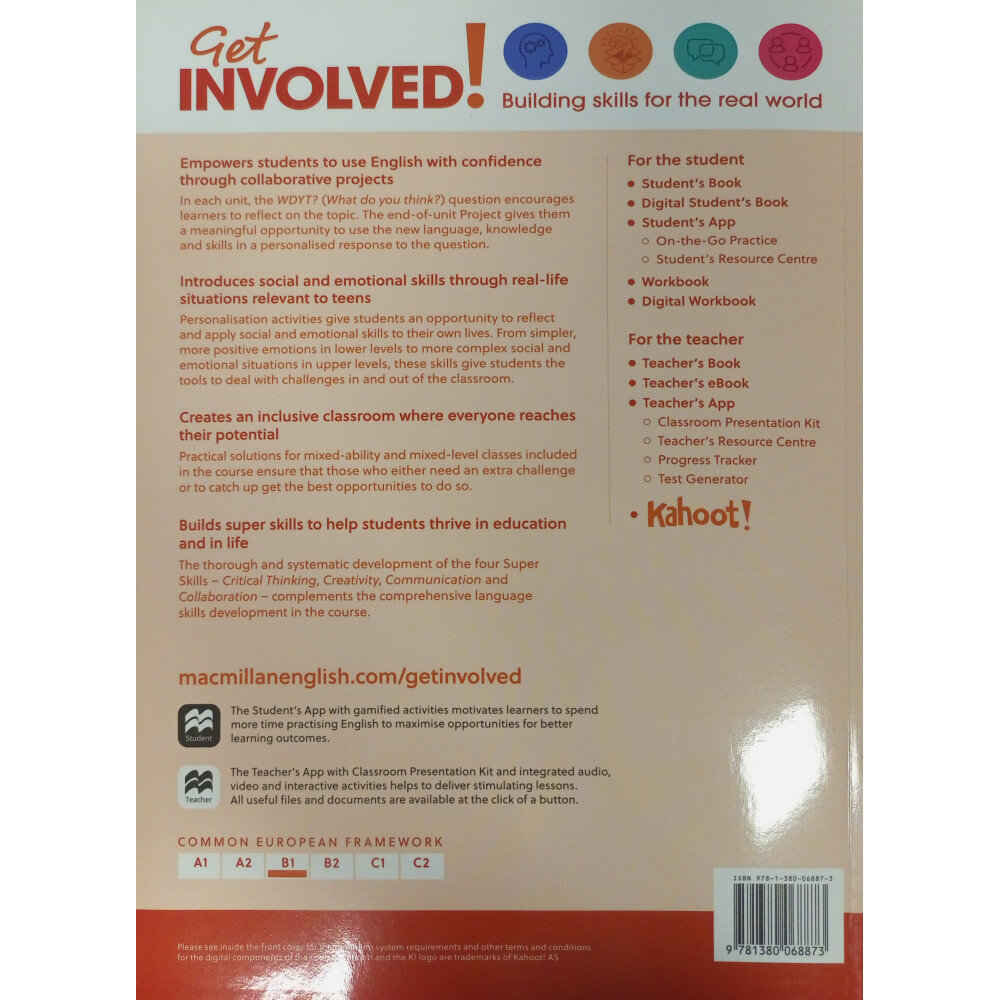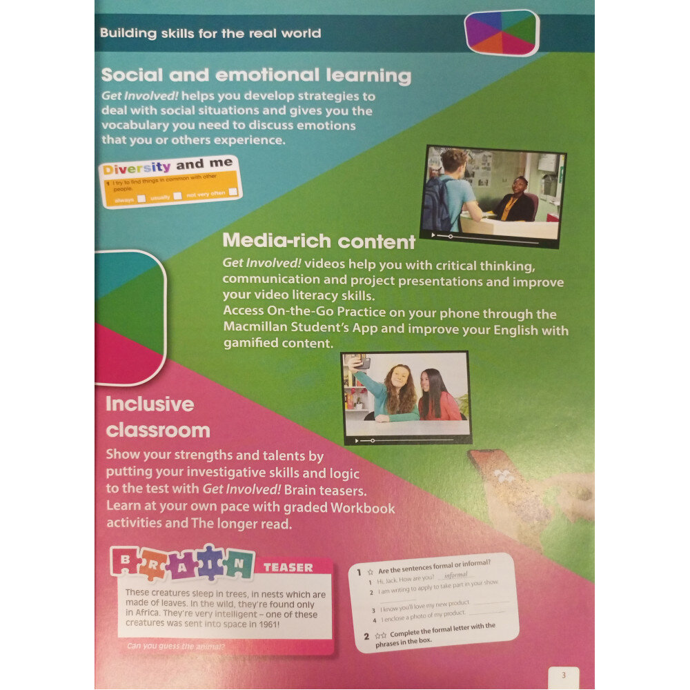 Get Involved! дает учащимся-подросткам чувство азарта и желание исследовать мир, который ждет их впереди. Это развивает их лингвистические навыки и супернавыки, побуждая их принимать участие в управлении своим будущим. Курс также позволяет учителям создать инклюзивный класс, где каждый раскрывает свой потенциал и имеет возможность проявить себя.