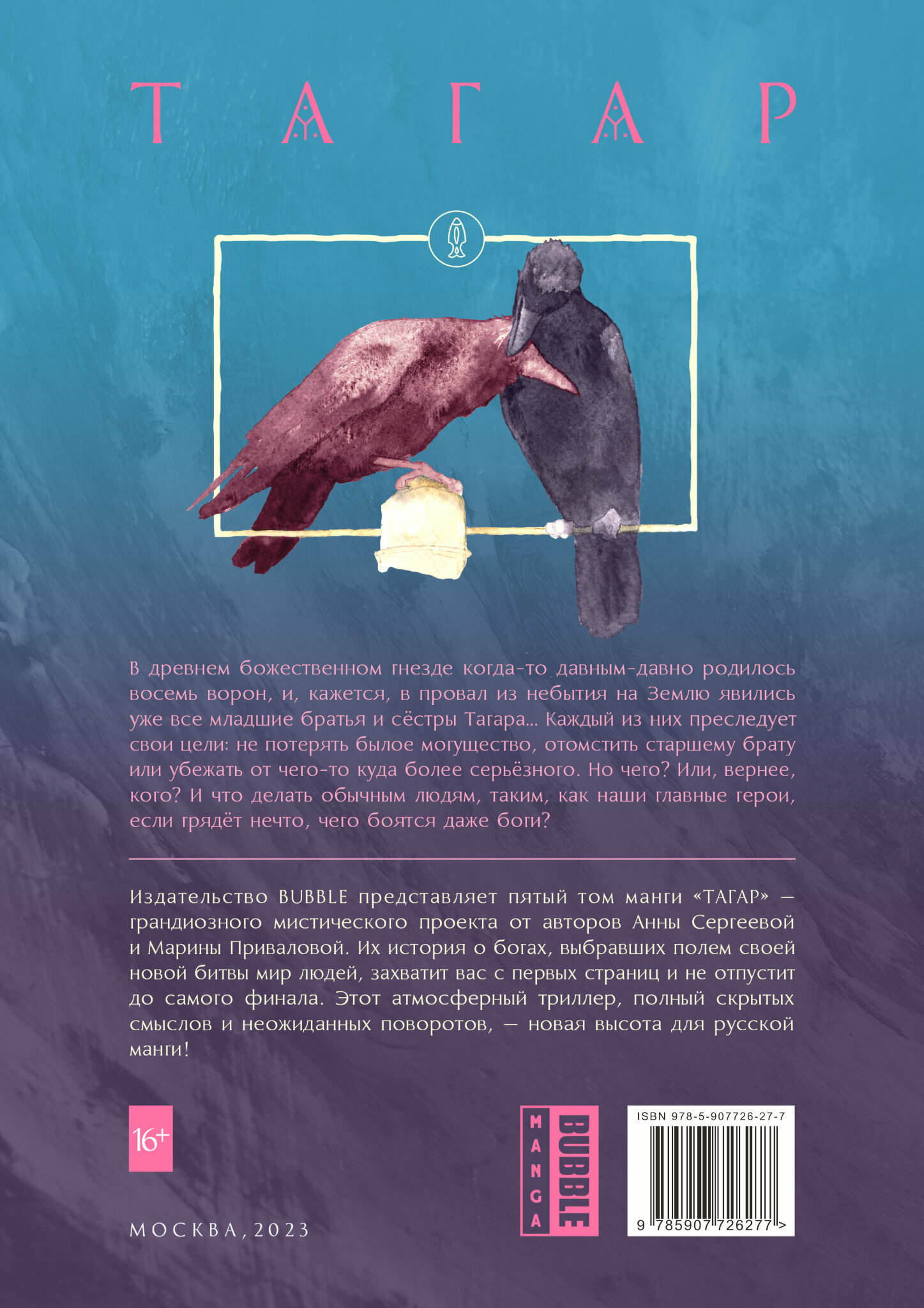 Издательство Bubble представляет пятый том манги "Тагар" - грандиозного мистического проекта от авторов Анны Сергеевой и Марины Приваловой. Их история о богах, выбравших полем своей новой битвы мир людей, захватит вас с первых страниц и не отпустит до самого финала. Этот атмосферный триллер, полный скрытых смыслов и неожиданных поворотов, - новая высота для русской манги!