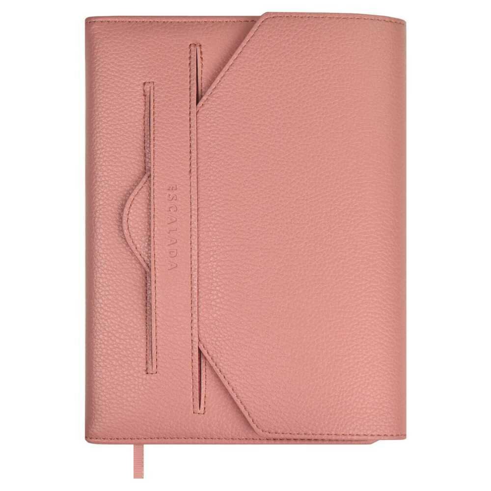 Ежедневник недатированный ESCALADA, формат А5 (150х211 мм), 160 л. Обложка: твёрдый переплёт с поролоном, блинтовое тиснение, есть, скруглённый корешок, закруглённые углы обложки. Внутренний блок: ниткошвейный, кремовый офсет 70 г/м?, печать в одну краску (линия), закруглённые углы блока, нет, есть. Красочность форзаца: печать пантоном. Закладка: одно ляссе. есть. Особенности: клапан фигурный мягкий в декоративной петле. Индивидуальная упаковка: ПЭТ-пакет.