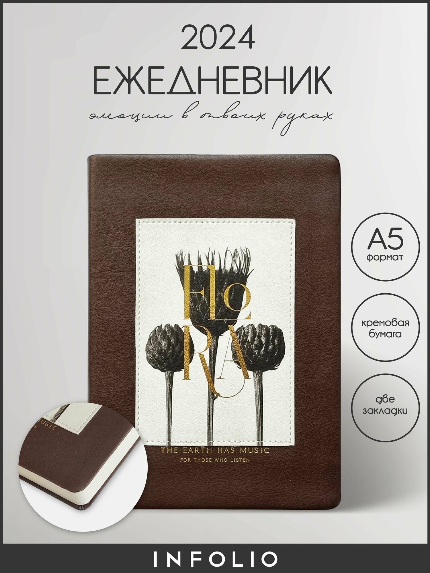 Ежедневник датированный на 2024 год Hebrarium коричневый А5 176 листов InFolio
