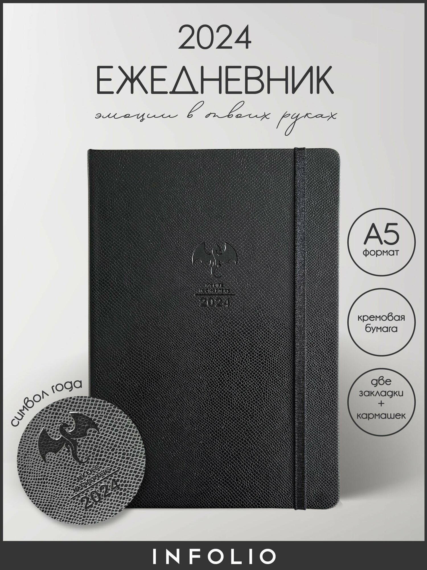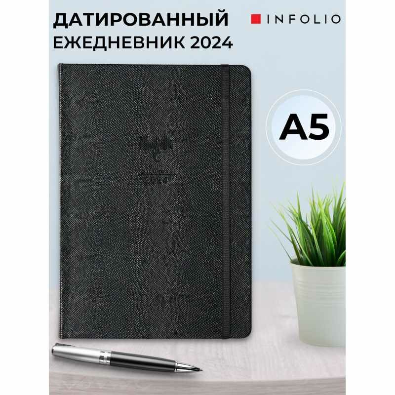Ежедневник датированный на 2024 год Dragon черный А5 176 листов InFolio