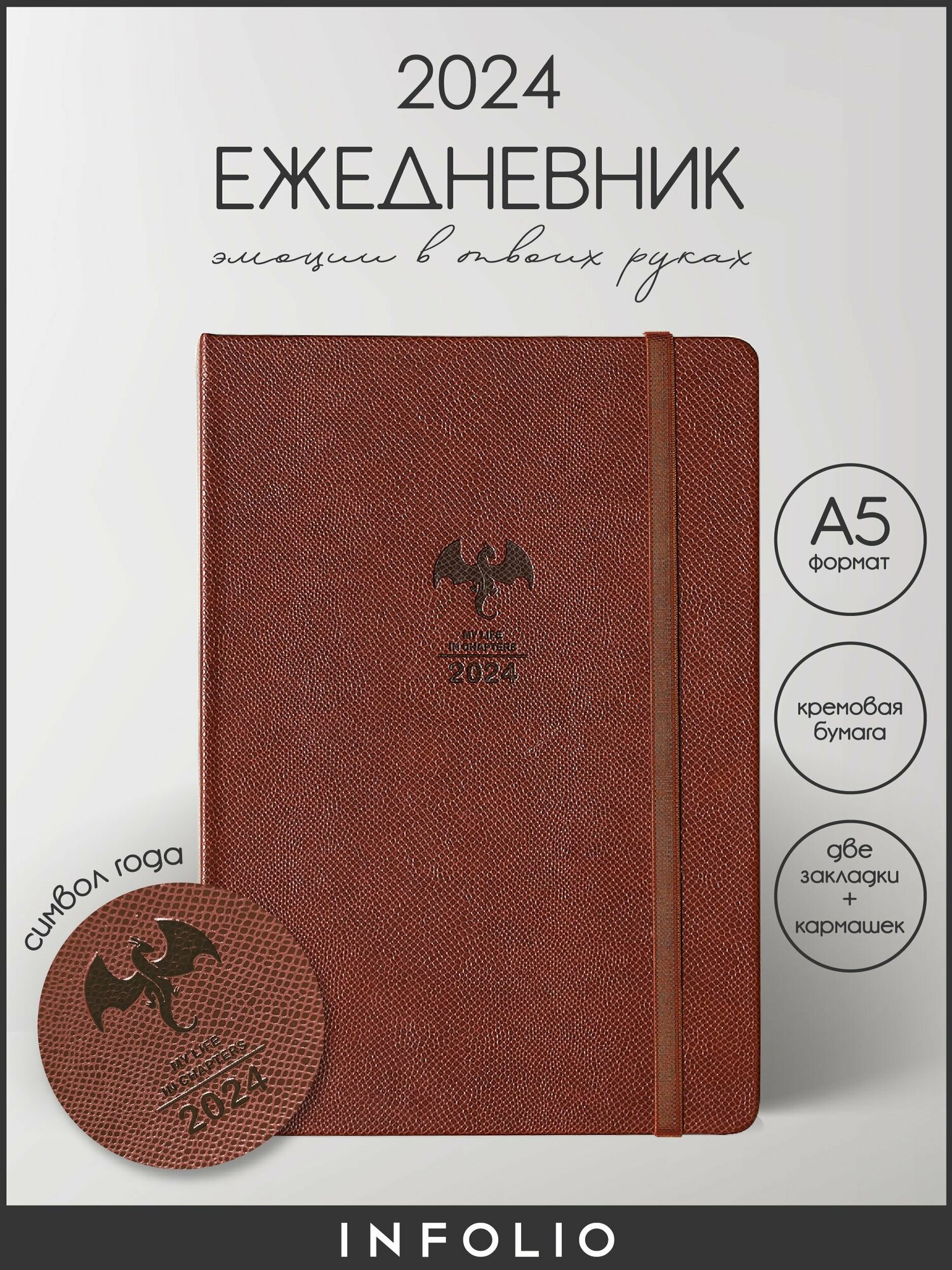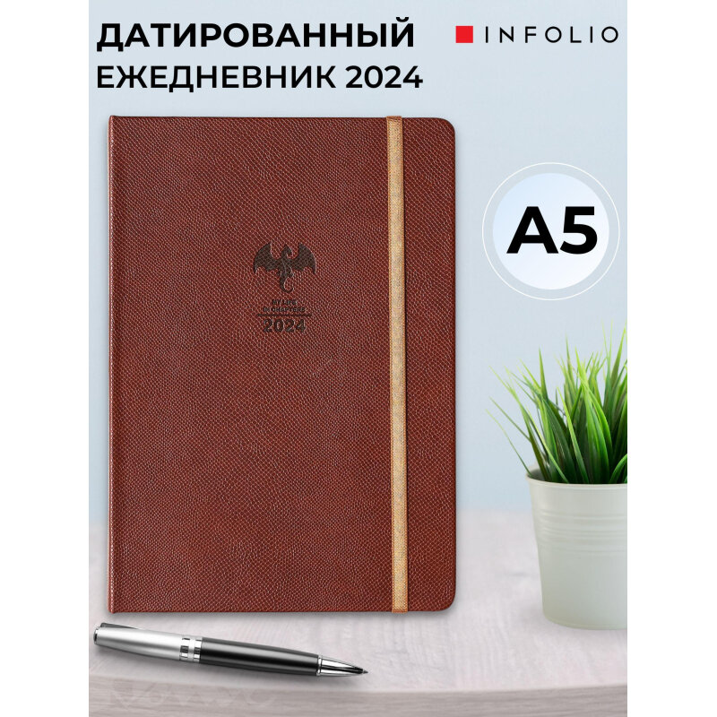 Ежедневник датированный на 2024 год Dragon коричневый А5 176 листов InFolio IЕДТ176НА5-2
