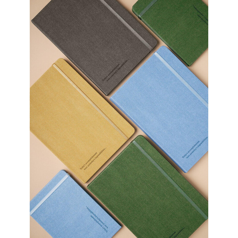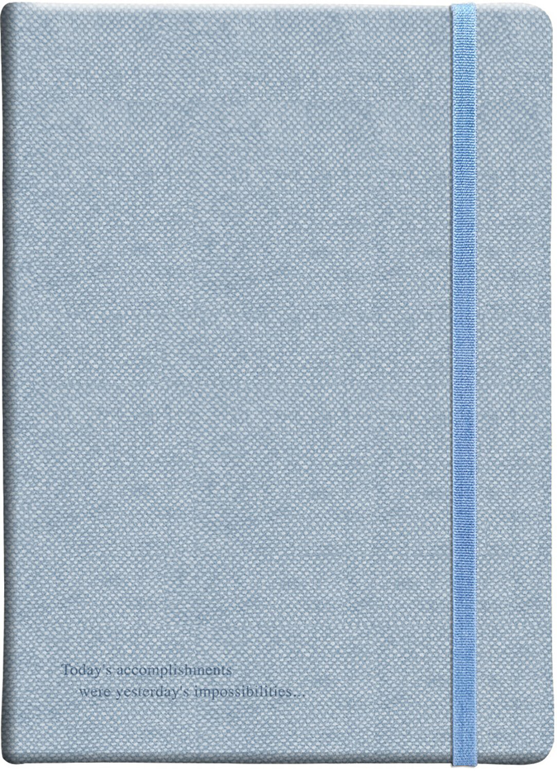 Обложка - твердая с резинкой, из преплетного материала с фактурой меланжевой рогожки, цвет - голубой. Блок - датированный, 352 стр., скругленные уголки, кармашек, 2 ляссе, бумага: слоновая кость, скругленные уголки, 70 г/м2, печать 2+2. Особенности: 2 ляссе и резинка в цвет основного материала, блинтовое тиснение, прокрас блока в цвет основного материала.