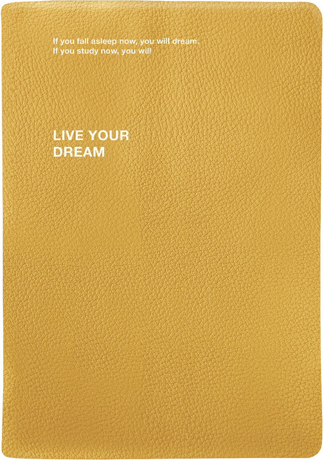 Обложка - интегральная, искусственная кожа с крупной фактурой, цвет - желтый. Блок - датированный, 352 стр., скругленные уголки, 2 ляссе, бумага: слоновая кость, скругленные уголки, 70 г/м2, печать 2+2. Особенности: отделка белой шелкографией, 2 цветных ляссе.
