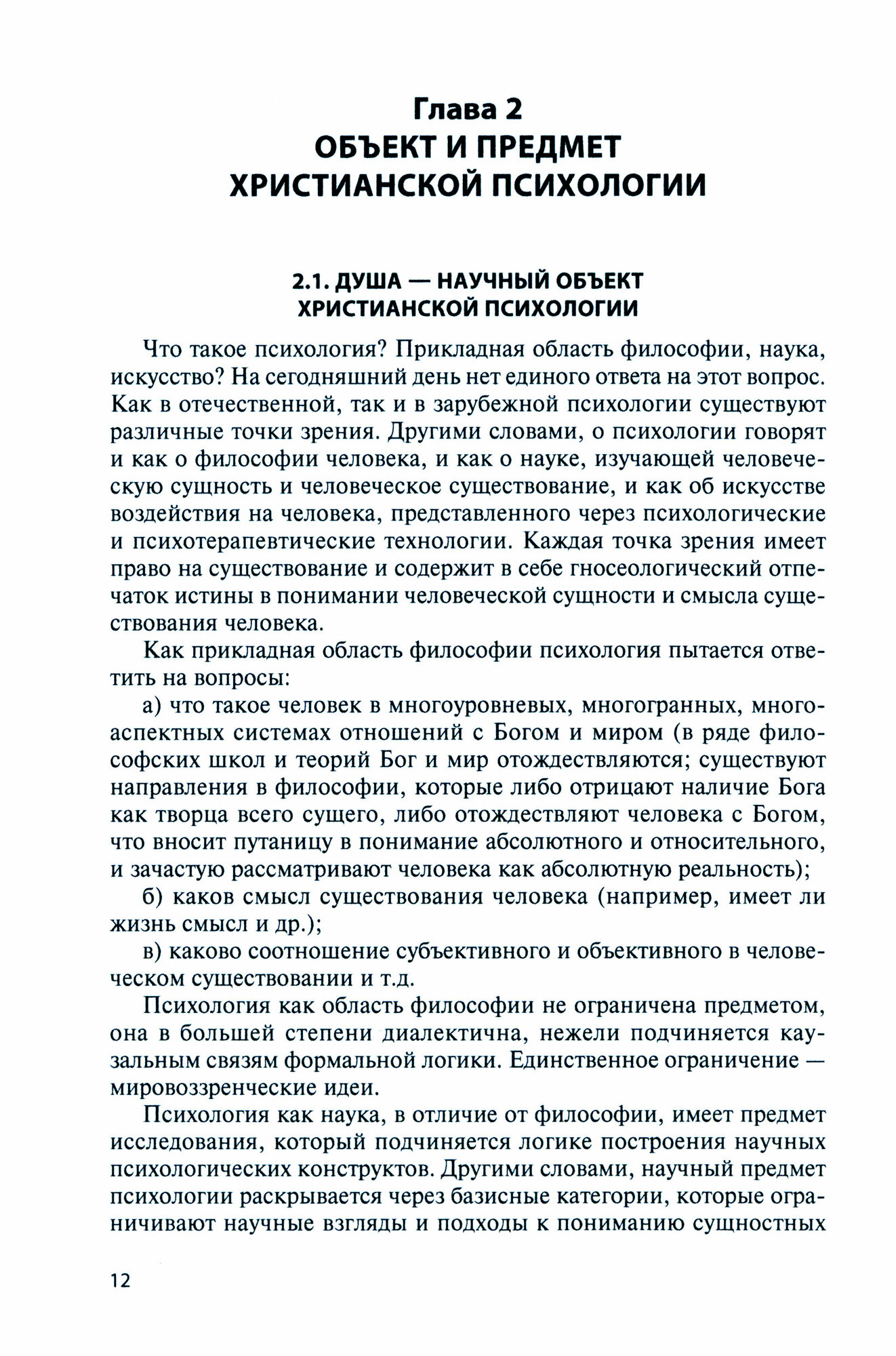 В учебном пособии определена методологическая основа христианской психологии, формулируются предмет, задачи и основные категории христианской психологии; с позиции метафизического и эмпирического уровня объяснения представлена теория личности и концепция интеллекта. Охарактеризованы основные силы души, обеспечивающие чувствования, познание, мышление, побуждения. Рассмотрены некоторые психологические состояния христианина.
