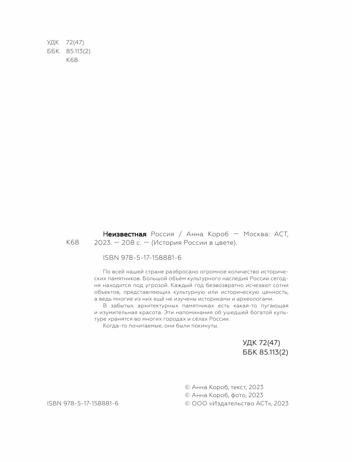 Книга: Неизвестная Россия (Короб Анна); Редакция Елены Шубиной, 2023