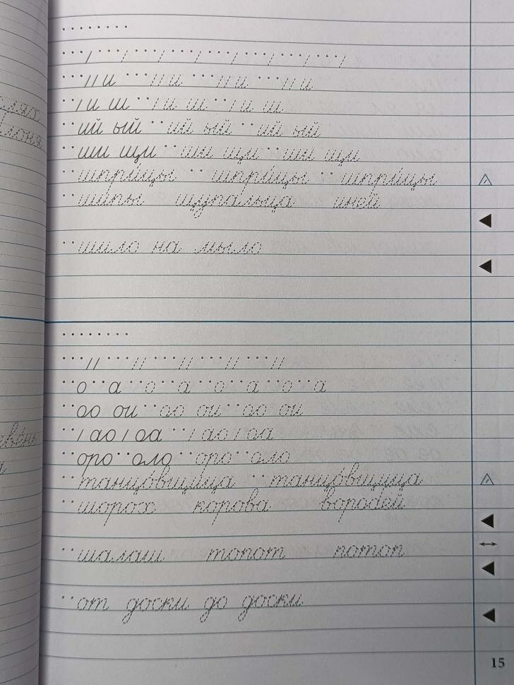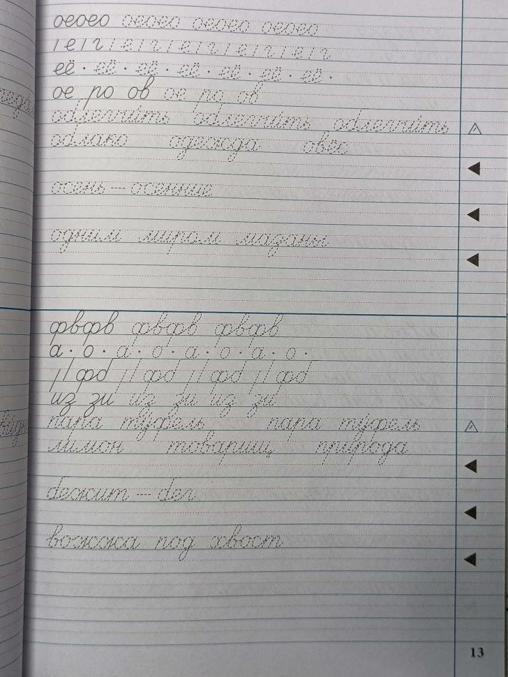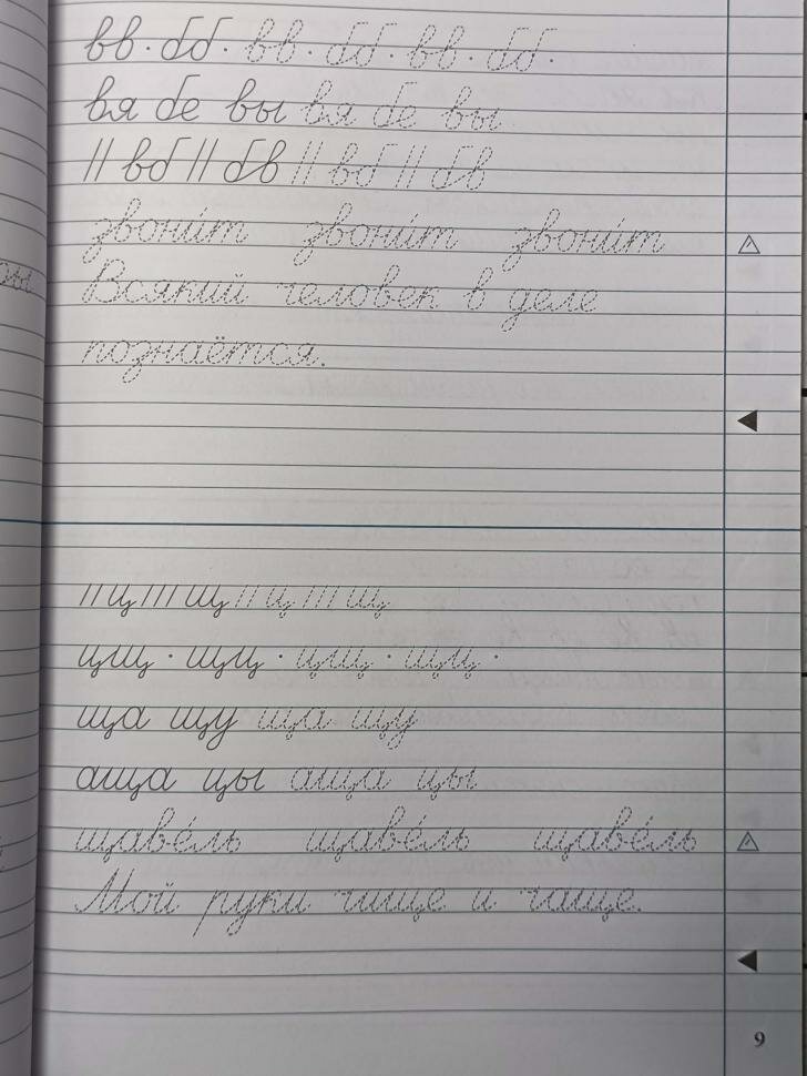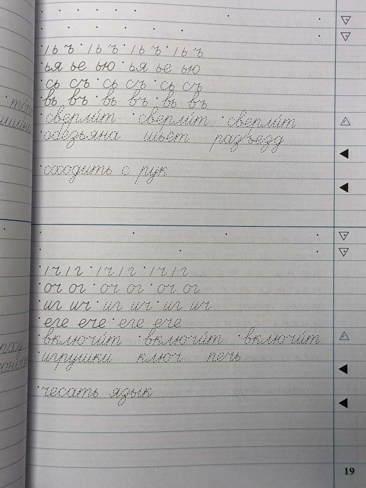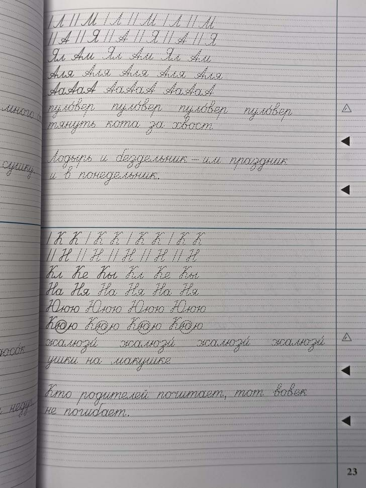 Данное пособие представляет собой прописи, с помощью которых можно не только совершенствовать каллиграфию письма, но и успешно преодолевать трудности при переходе с узкой строки на широкую. В связи с этим тетрадь разделена на восемь частей.
