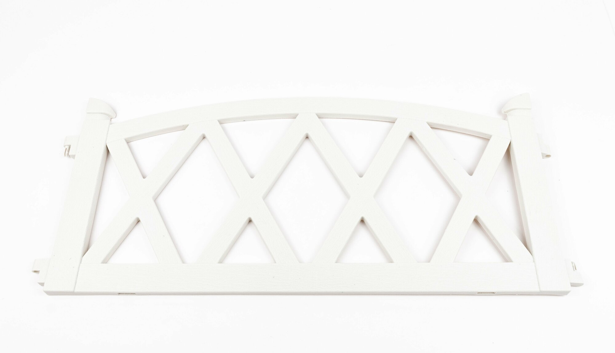 Забор для клумб Мастер Сад Арка представляет собой конструкцию из нескольких сегментов, собирающихся в ограждение длиной 2,4 м. Дизайн изделия напоминает традиционные арки или перголы, благодаря чему забор прекрасно смотрится в любом уголке сада.