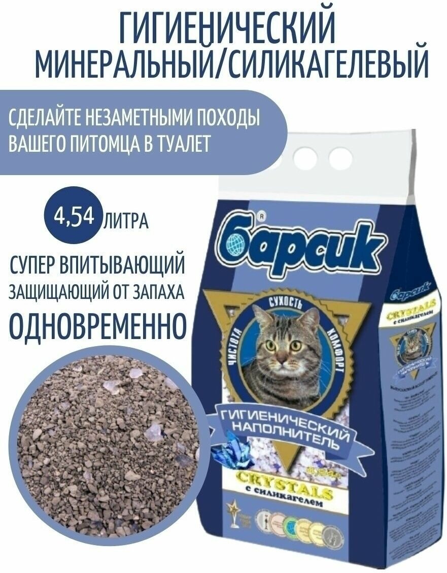 Барсик Crystals - минеральный наполнитель с добавлением кристаллов силикагеля.