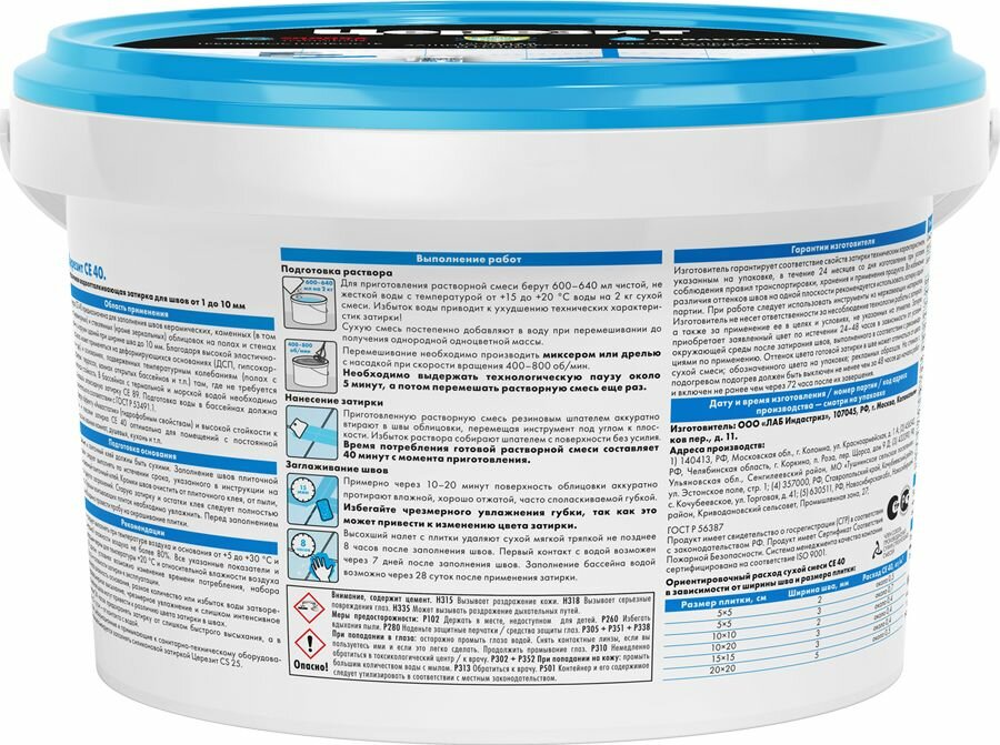 Высохший налет с плитки удаляют сухой мягкой тряпкой не позднее 8 часов после заполнения швов. Технологический проход возможен через 8 часов, а первый контакт с водой - через 7 дней после заполнения швов.