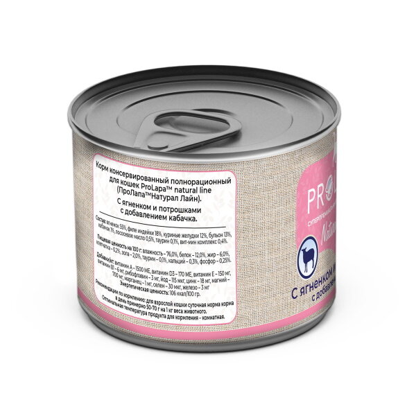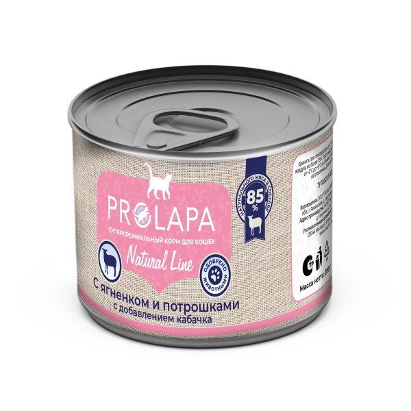 Влажный корм для кошек Prolapa Natural Line с ягненком потрошками и кабачком 200 г