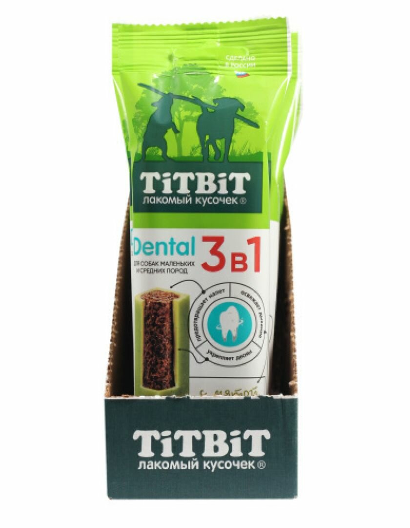 Лакомство для собак TiTBiT Dental 3в1 с мятой для мелких и средних пород 110 г