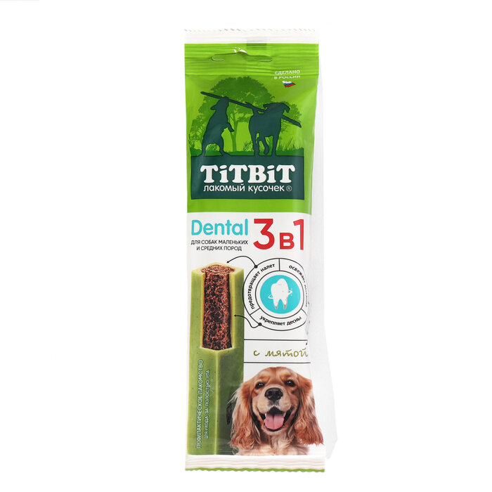 Сервис сравнения цен СкидкаГИД предлагает сравнить цены на товар «Лакомство для собак TiTBiT Dental 3в1 с мятой для мелких и средних пород 110 г»