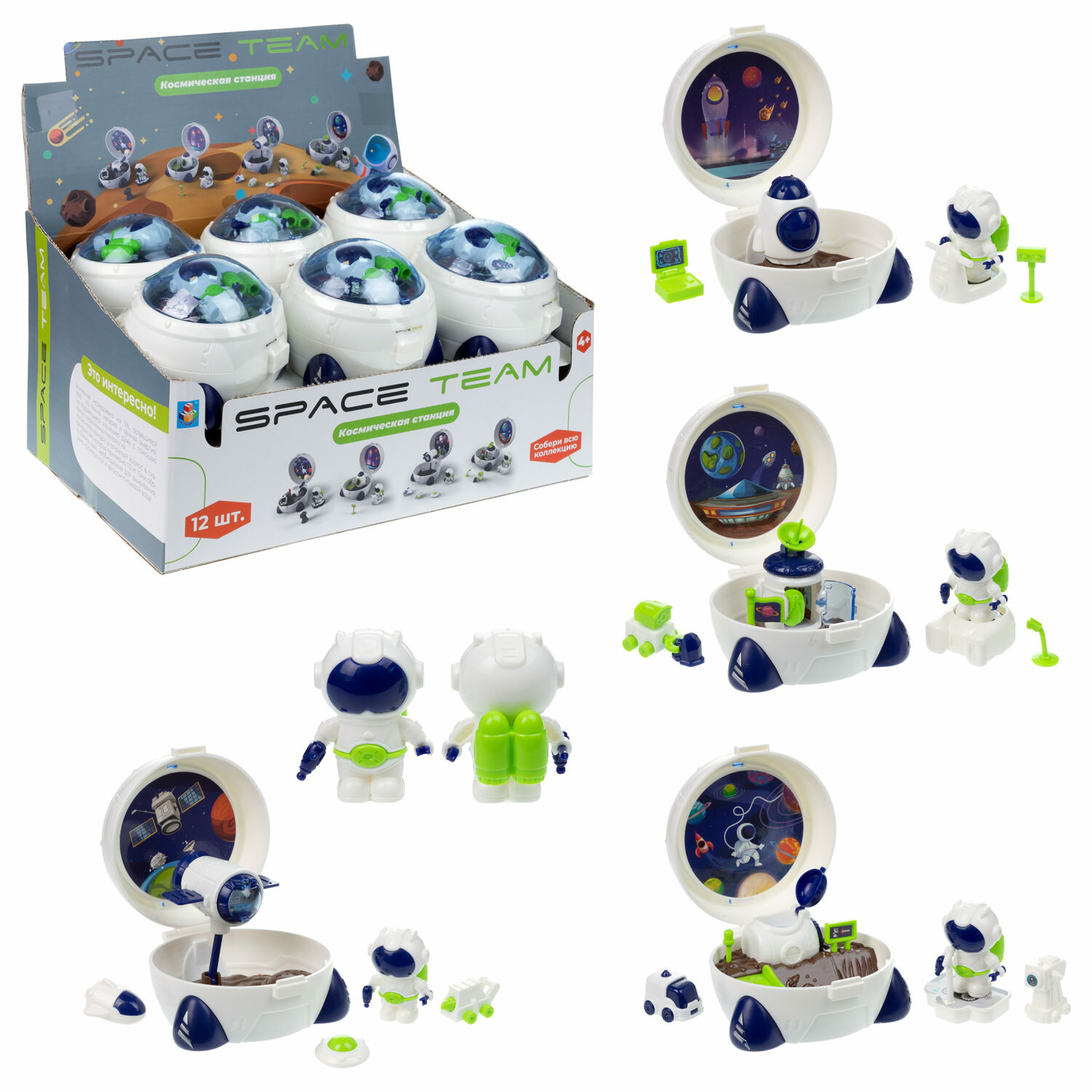 Детская игрушка - игровой набор "Space Team" от бренда 1TOY представлен в виде маленькой космической станции, в которую входит фигурка космонавта и разные дополнительные предметы (ноутбук, бинокль, спутниковая тарелка, флайборд и др.). В ассортименте представлено всего 4 вида наборов с разной комплектностью. Игрушка развивает воображение ребенка, пространственное мышление и мелкую моторику; поможет развить интерес к космонавтике. Соберите всю коллекцию наборов!