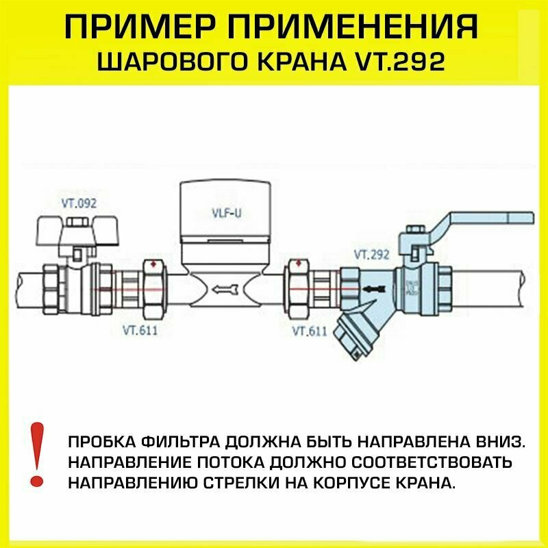 - КРАН ШАРОВОЙ VALTEC VT.292.N.04 1/2 ДЮЙМА F-F С ФИЛЬТРОМ