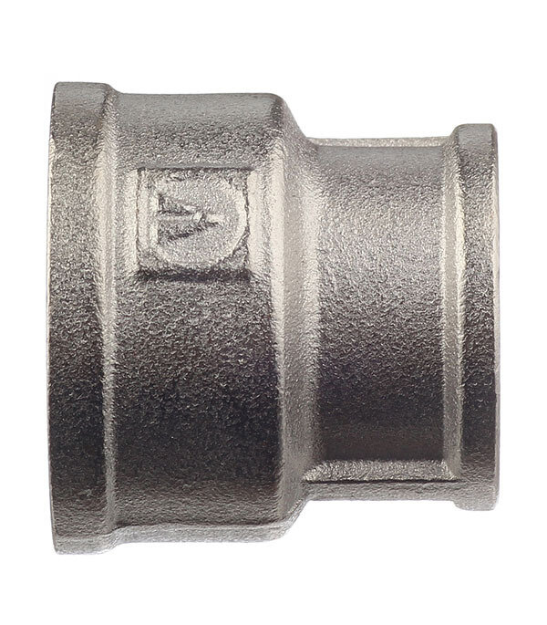 Латунная никелированная муфта для перехода с одного диаметра трубы на другой.