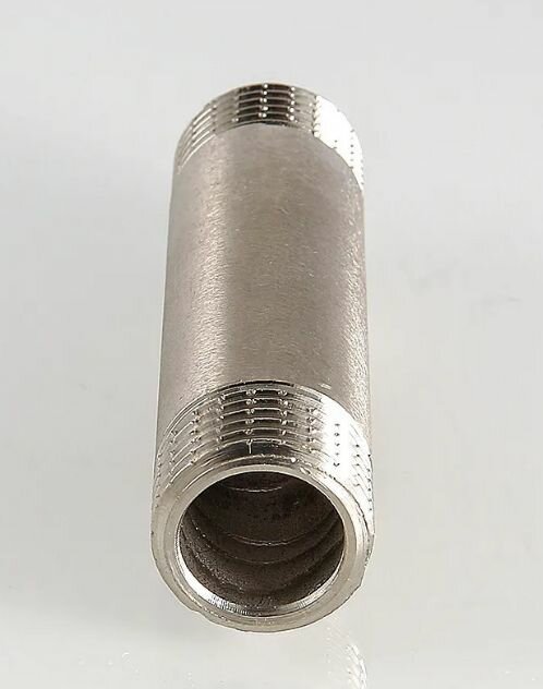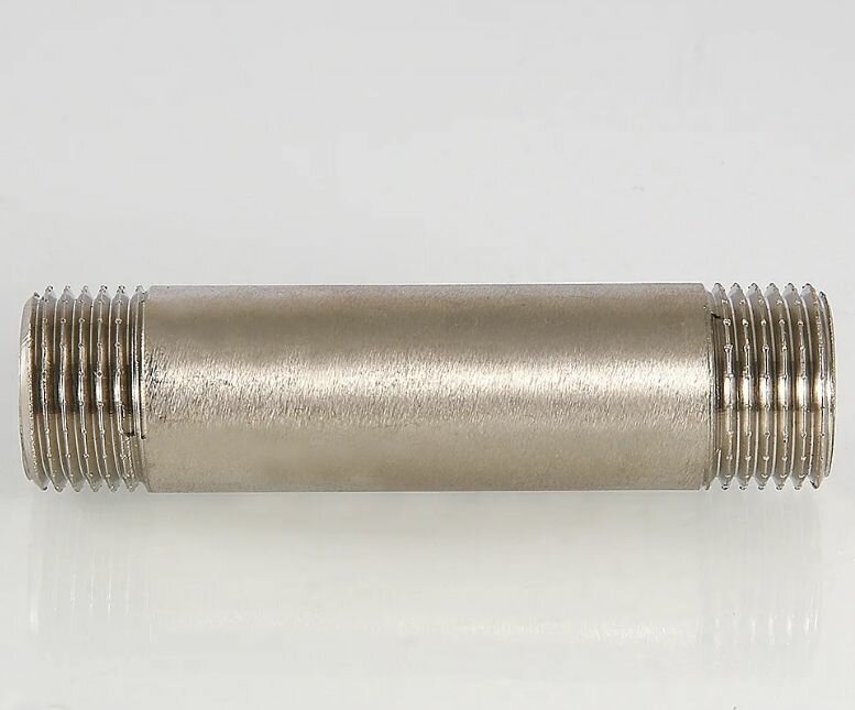 Латунный никелированный резьбовой фитинг с двухсторонней наружной трубной цилиндрической резьбой по ГОСТу 6357 (ISO 228, EN 10226). Длина – от 60 до 250 мм, диаметр – 1/2 .
