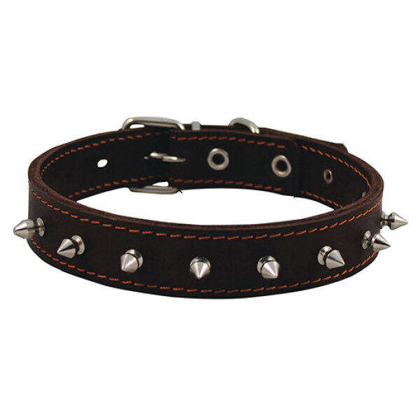 Этот стильный ошейник изготовлен из натуральной высококачественной кожи с использованием крепкой металлической фурнитуры. По всему периметру ошейник украшен стальными шипами.Ошейник имеет разные диапазоны длины по обхвату шеи собаки:21-27 см. (ширина ошейника 15 мм.)27-35 см. (ширина ошейника 20 мм.)39-46 см. (ширина ошейника 25 мм.)44-53 см. (ширина ошейника 30 мм.)50-59 см. (ширина ошейника 35 мм.)57-66 см. (ширина ошейника 45 мм.)Ошейник имеет:- стальное полукольцо для пристёгивания к нему карабина от поводка;- 4 отверстия для регулировки длины;- металлическую застёжку.Цвет: черный, коричневый.Цвета в ассортименте. Расцветку уточняйте у оператора.Цвет изделия на фотографии может отличаться от цвета фактического товара.