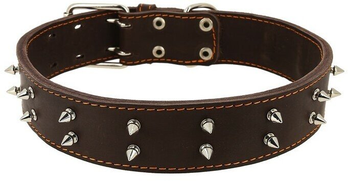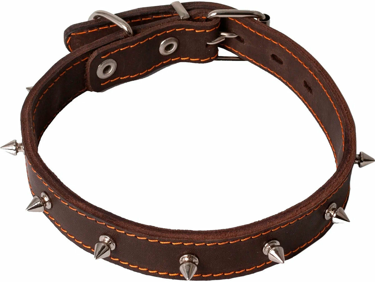 Каскад ошейник с шипами кожаный двойной (57-66 см.)