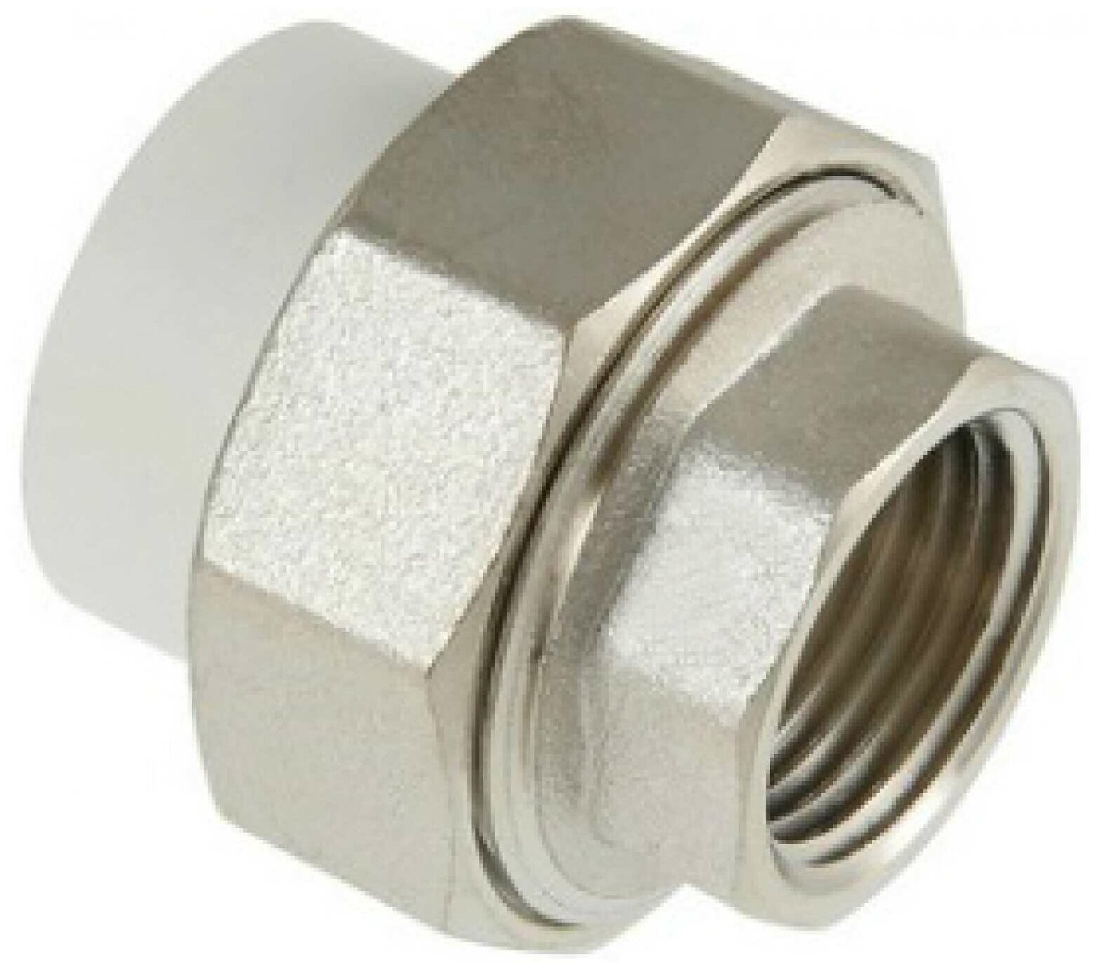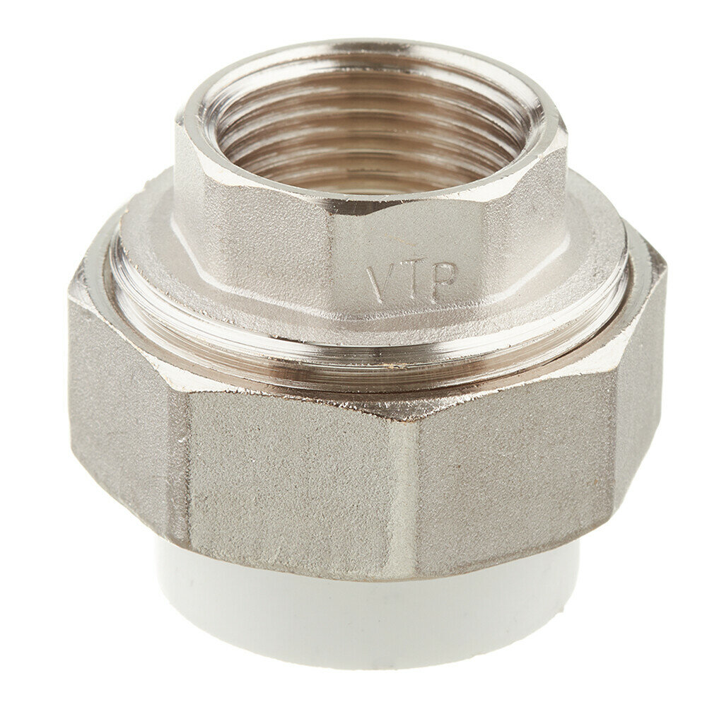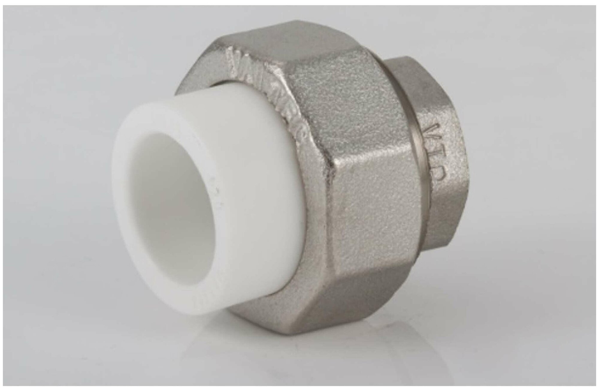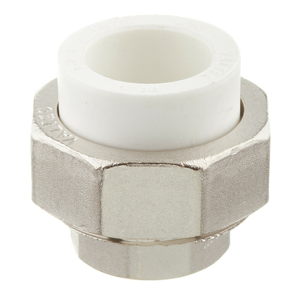 Металлопластиковый фитинг для создания разъемного, с использованием накидной гайки, соединения полипропиленового трубопровода с трубопроводом или арматурой из других материалов.