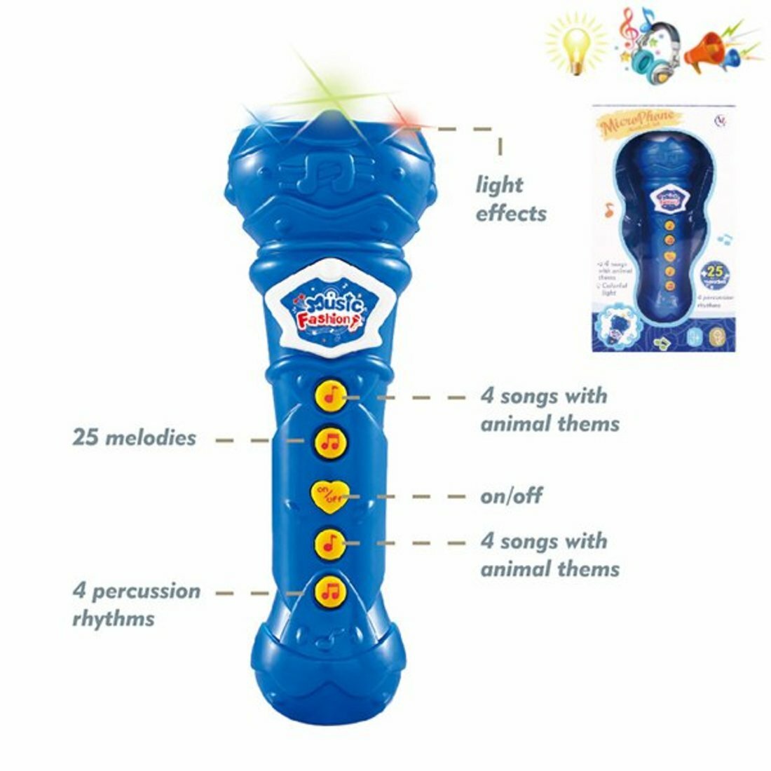 Игрушечный микрофон развивает музыкальный слух, чувство ритма и воображение.