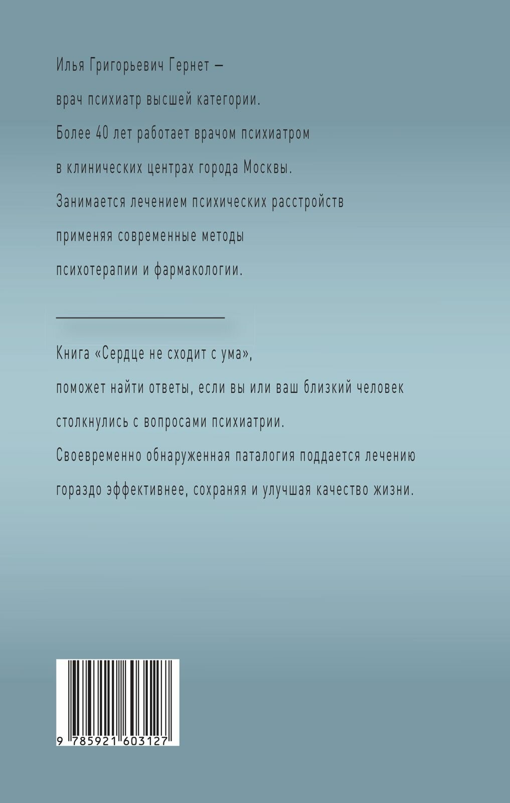 Вы держите в руках книгу психиатра Ильи Григорьевича Гернета "Сердце не сходит с ума"; она поможет найти ответы на вопросы, связанные с психиатрией. Книга будет интересна как для специалистов, так и для читателей, интересующихся темой психического здоровья, профилактикой старения и продуктивной жизни в любом возрасте.