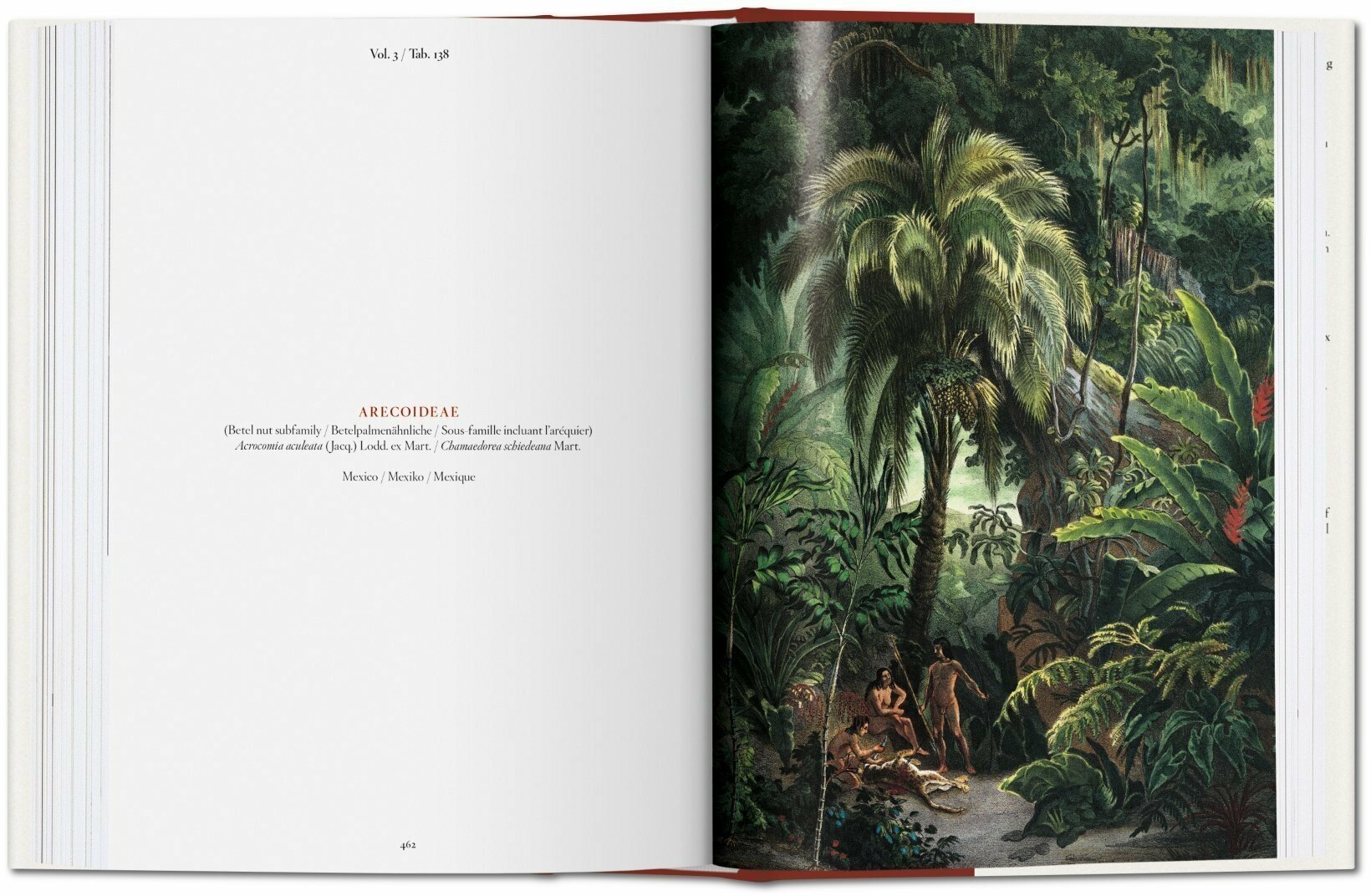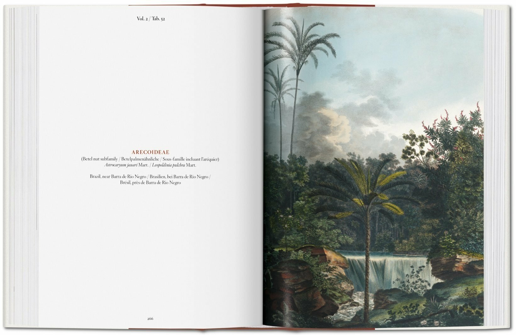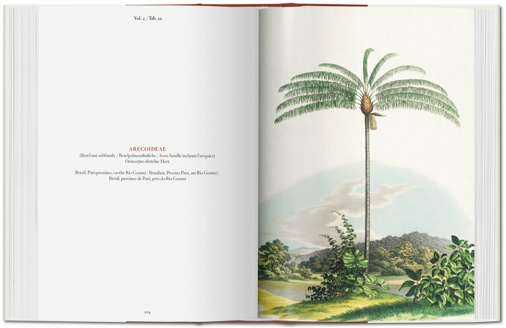 This encyclopedic treasury of 240 exquisite chromolithographic illustrations was based on von Martius's expeditions through Brazil and Peru. From 1817 to 1820, he traveled over 2,250 km (1,400 miles) through the Amazon basin to investigate natural history and native tribes with zoologist Johann Baptist von Spix.